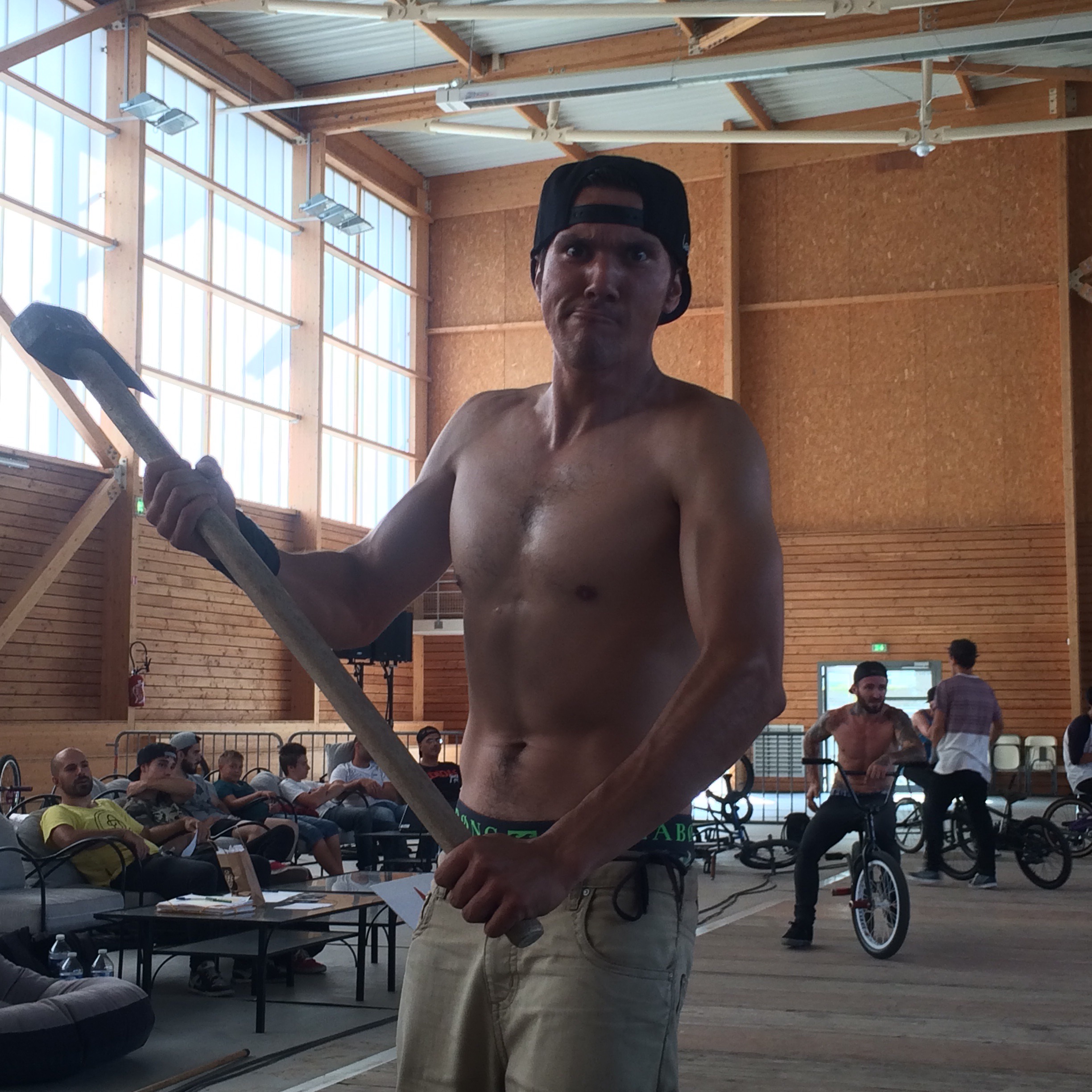 Kris Gautier organizing and fixing the floor